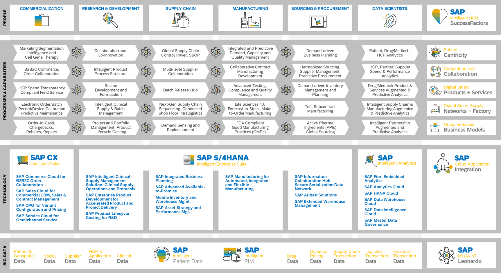 Life sciences companies will continue to evolve business models in a more patient lifecycle service-based context, such as personalized genome therapy treatments. The nature of biopharmaceutical R&D and medical device design and engineering processes will increasingly become patient-centric and require collaborative networks to accelerate time to market. Traditional back-office functions such as finance, IT, HR, data management, and commercialization must continue to matured into a single global service organization that supports HCP value chain relationships. Manufacturing, supply, and logistics networks will be smart, flexible and agile to support co-opetition joint ventures. Successful business model innovation, process optimization, and workforce productivity are intrinsically linked as the new norms. Embracing new technologies and implementing the right business initiatives will form the foundation for innovative business capability expansion.