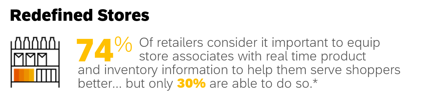 Reimagine the store as a place that underlines your value proposition to the customer and provides a unique shopping experience. Empower the store associates and managers to personalize each customer’s trip. Connect the digital and physical spaces to fulfill any customer request with an endless aisle.